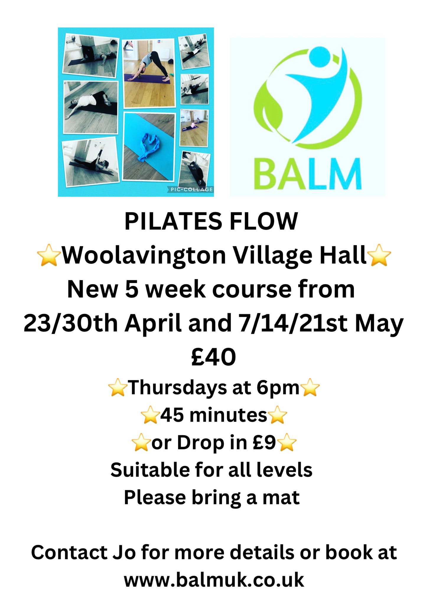 Mat based Pilates - All levels - Course or Drop-In